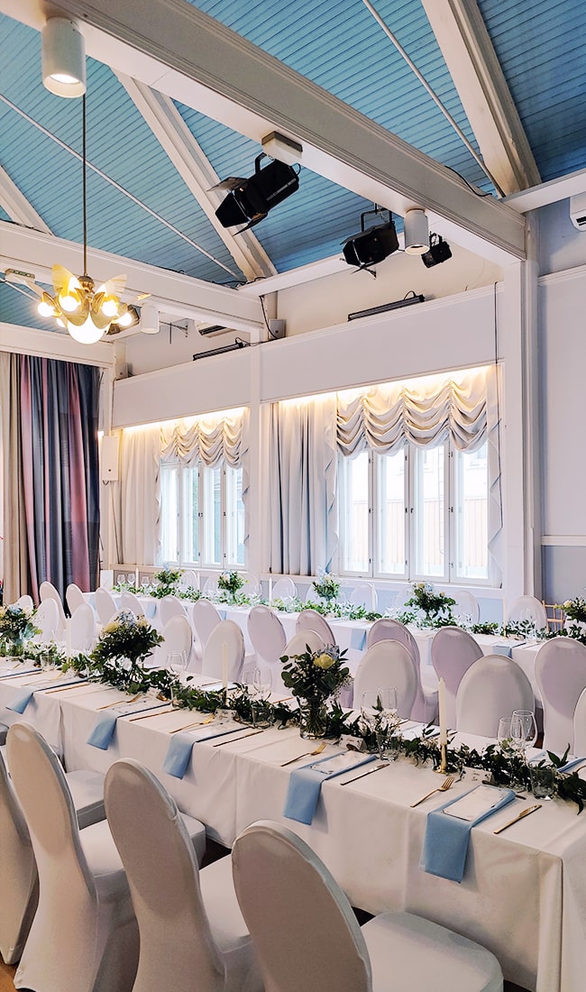 Komediateatterin Juhlatalo ja juhlatalo Hovi ovat Tampereen keskustassa sijaitsevia arvokkaita juhlatiloja, joissa yhdistyvät historia, tyylikkyys ja moderni mukavuus. Näissä ainutlaatuisissa tiloissa voit viettää elämäsi tärkeimpiä hetkiä, olipa kyseessä intiimi perhejuhla tai suuren luokan yritystilaisuus. Rakennusten historiallinen arvo ja elegantit puitteet tekevät tiloista täydelliset niin häihin, merkkipäiviin kuin yritysten juhliin ja kokouksiin.