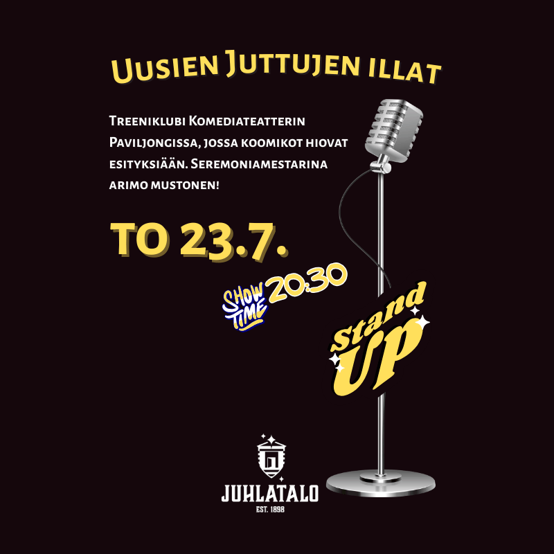 PERUSLIPPU 23.7. - Uusien Juttujen IltaTorstai 23.7.2026, 20.30, Komediateatterin Paviljonki